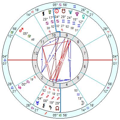 Here we have another Cancer, with his Sun conjunct Neptune in the 12th house! His rising sign is Cancer as well, which places emphasis on his Moon in Gemini in the 11th house, conjunct the South Node.