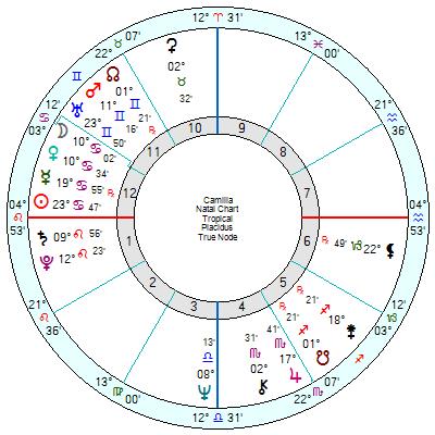 Black Moon Lilith here will winkle Camilla out of hiding and into public service roles, as deadly as she will find them. She has Ceres in Taurus in the 10th house, and Saturn on the ascendant. As much as she wants to be in her comfort zone, she must leave it in order to acheive the higher octave of the woman that she is. The Goddess demands she be in the public eye.