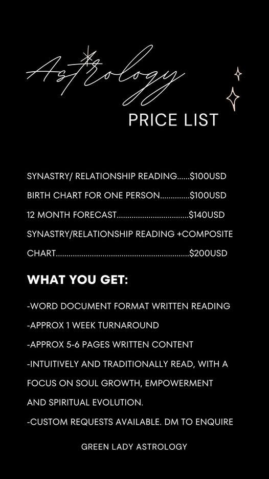 Astrology readings that I offer are as follows: