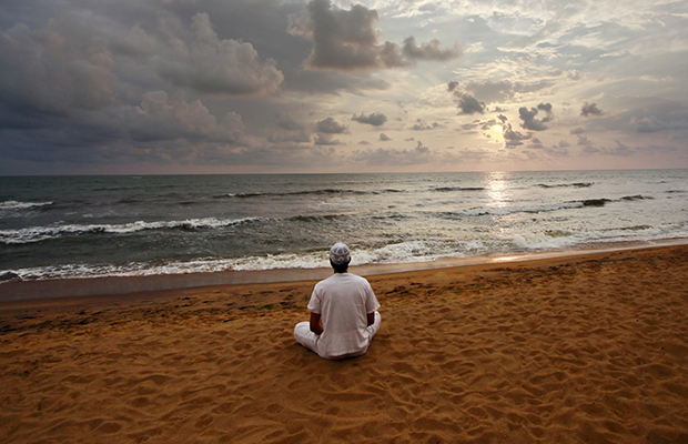 Previous Image Next Image Guy meditating at sunset sitting on coastline Guy meditating at sunset sitting on coastline